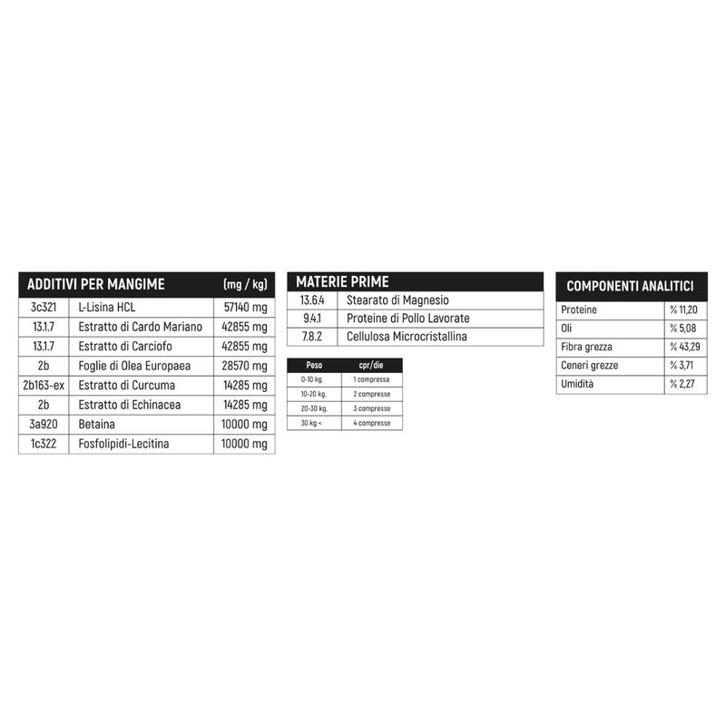 • Complemento alimentare in compresse per cani e gatti di tutte le taglie.