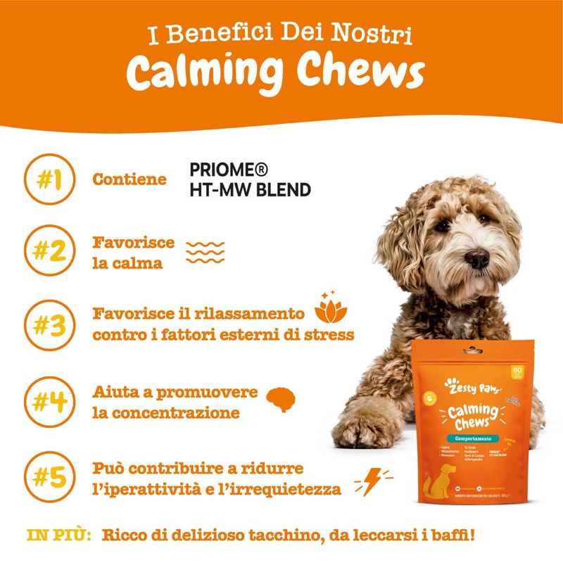 Con Zesty Paws Calming Chews Comportamento Cane Alimento Complementare, offri al tuo cane un aiuto prezioso per vivere con serenità anche le situazioni più stressanti!