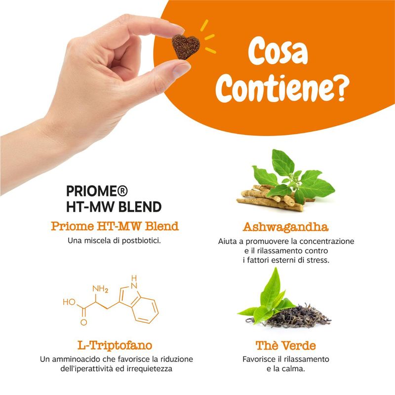 • Contiene Tè Verde, Ashwagandha, L-triptofano e PRIOME HT-MW BLEND.